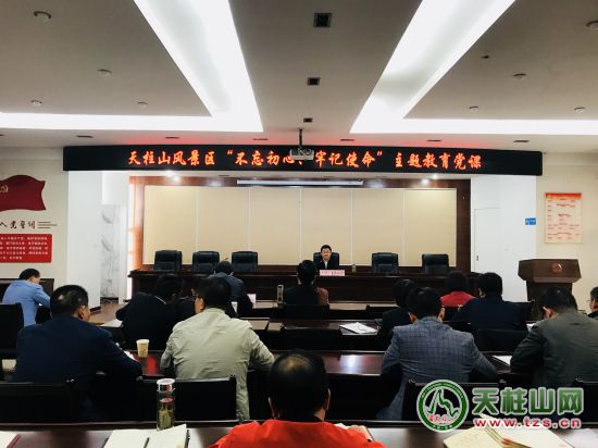 專題黨課上,涂高生緊緊圍繞學(xué)習(xí)貫徹習(xí)近平新時(shí)代中國(guó)特色社會(huì)主義思想這條主線,結(jié)合景區(qū)重點(diǎn)項(xiàng)目建設(shè)、宣傳營(yíng)銷、森林防火、隊(duì)伍建設(shè)以及個(gè)人思想認(rèn)識(shí),從“守初心、擔(dān)使命,找差距、抓落實(shí)”四個(gè)要求方面幫助風(fēng)景區(qū)黨員干部職工深化對(duì)“不忘初心、牢記使命”主題教育的認(rèn)識(shí)。