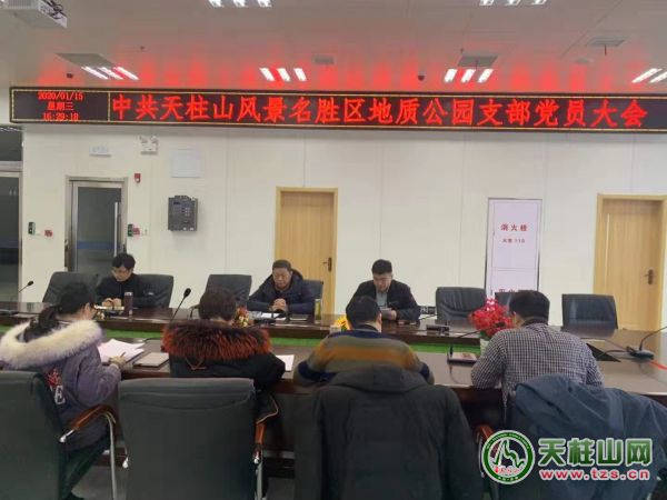 2020年1月15日,中共天柱山風(fēng)景名勝區(qū)地質(zhì)公園支部召開黨員大會,支部全體黨員參加會議,風(fēng)景區(qū)黨委委員、天管會副主任王晨東蒞臨會議指導(dǎo)。
