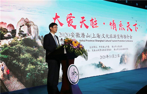 潛山市委常委、天柱山管委會副主任涂高生推介天柱山旅游