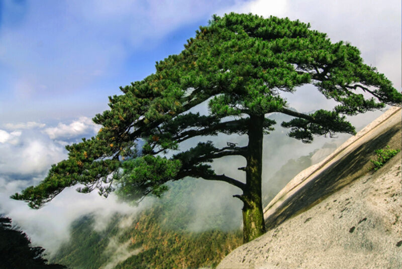 登天柱,滿目皆松。在安徽潛山市天柱山上,千年古松不下萬株,千姿百態(tài)。其中尤以群松之首的天柱松最為出名。天柱松與日月為伴,風(fēng)雨為友,據(jù)了解,已有1000多歲。