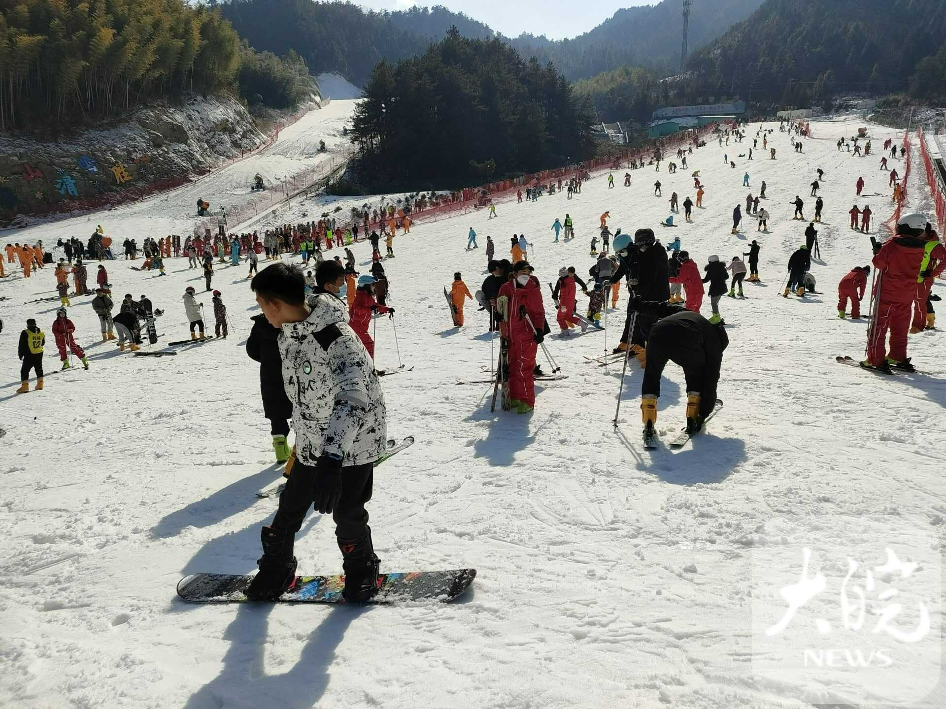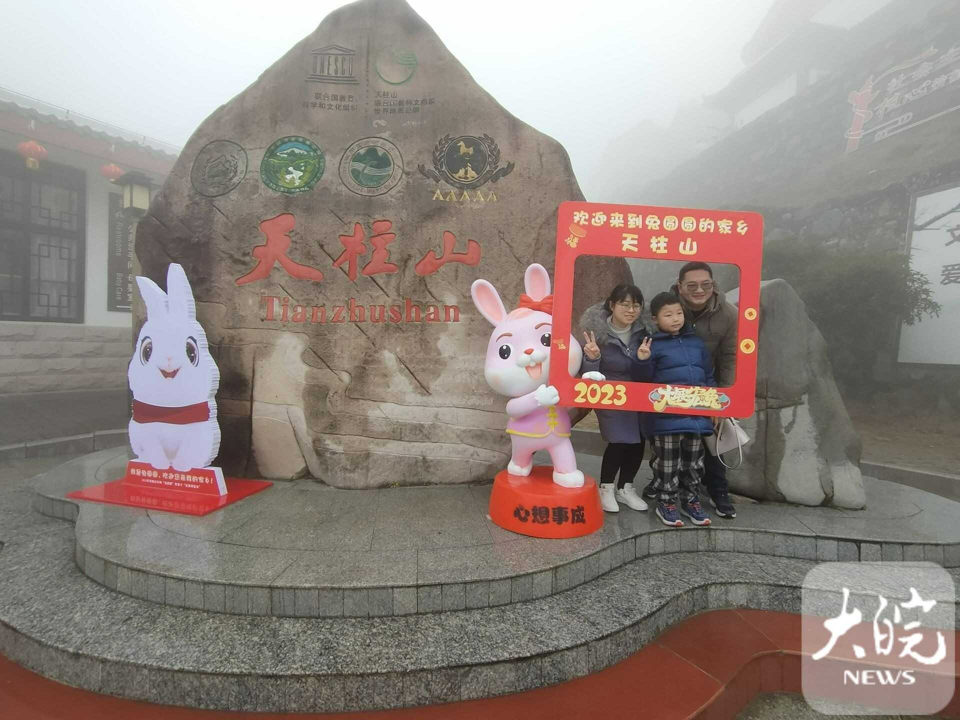 春節(jié)假期,天柱山風(fēng)景美,年味濃,景區(qū)在馬祖、茶莊游客中心、天池峰等多處設(shè)有歡慶新年的“兔圓圓”卡通形象,游客在這里拍照,許下美好愿望?!敖衲甏汗?jié)帶著家人在天柱山旅游過年,提前在網(wǎng)上預(yù)訂好民宿,一家人開心快樂地體驗(yàn)山岳風(fēng)情,吃農(nóng)家菜、看民俗、滑冰雪、賞美景,體驗(yàn)“慢生活”,在“兔圓圓”故鄉(xiāng)過兔年,意義非凡?!眮碜陨虾5挠嘞壬_心地說。
