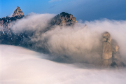 特色: “山無云則不秀,無水則不媚”。天柱山獨(dú)特的地形和秋日多變、濕潤(rùn)的氣候,造成了壯觀的云霧霞光,最迷人之處在于時(shí)而似萬馬奔騰,時(shí)而濃霧空濛,時(shí)而薄霧如紗,云海之上,一輪紅日斜掛,置身山巔,猶如仙境一般。圖/余方斌 文/夏荷